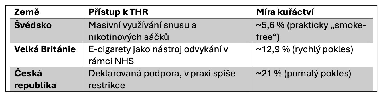 Česká republika princip tobacco harm reduction oficiálně uznává a zmiňuje jej ve strategických dokumentech. V praxi však v posledních letech sledujeme spíše opačný trend – snahy o zákazy některých produktů či příchutí, které jsou pro dospělé kuřáky klíčové při přechodu od cigaret. Tyto kroky jdou přímo proti smyslu snižování zdravotních rizik.